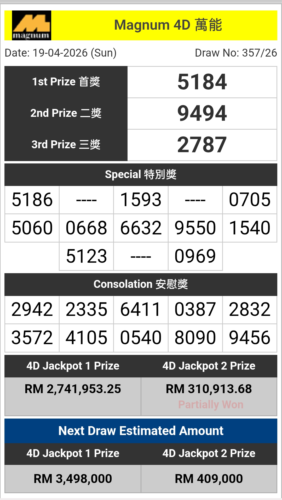 วันนี้ทาง oopsnew.com จึงขอทำหน้าที่นำเสนอ ผลการออกรางวัล หวยมาเลย์ ( Magnum 4D 万能万字 ) โดยข้อมูลที่กล่าวมาข่างต้น ได้มีการเผยแพร่ผ่านทางหลายช่องทางอยู่แล้ว